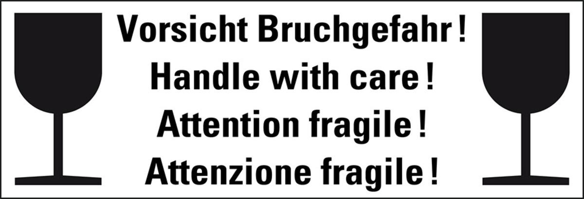 Zur Kennzeichnung und Markierung von Packstücken. Informieren Sie Spediteure und Empfänger über Inhalte und Handhabung der Versandstücke.