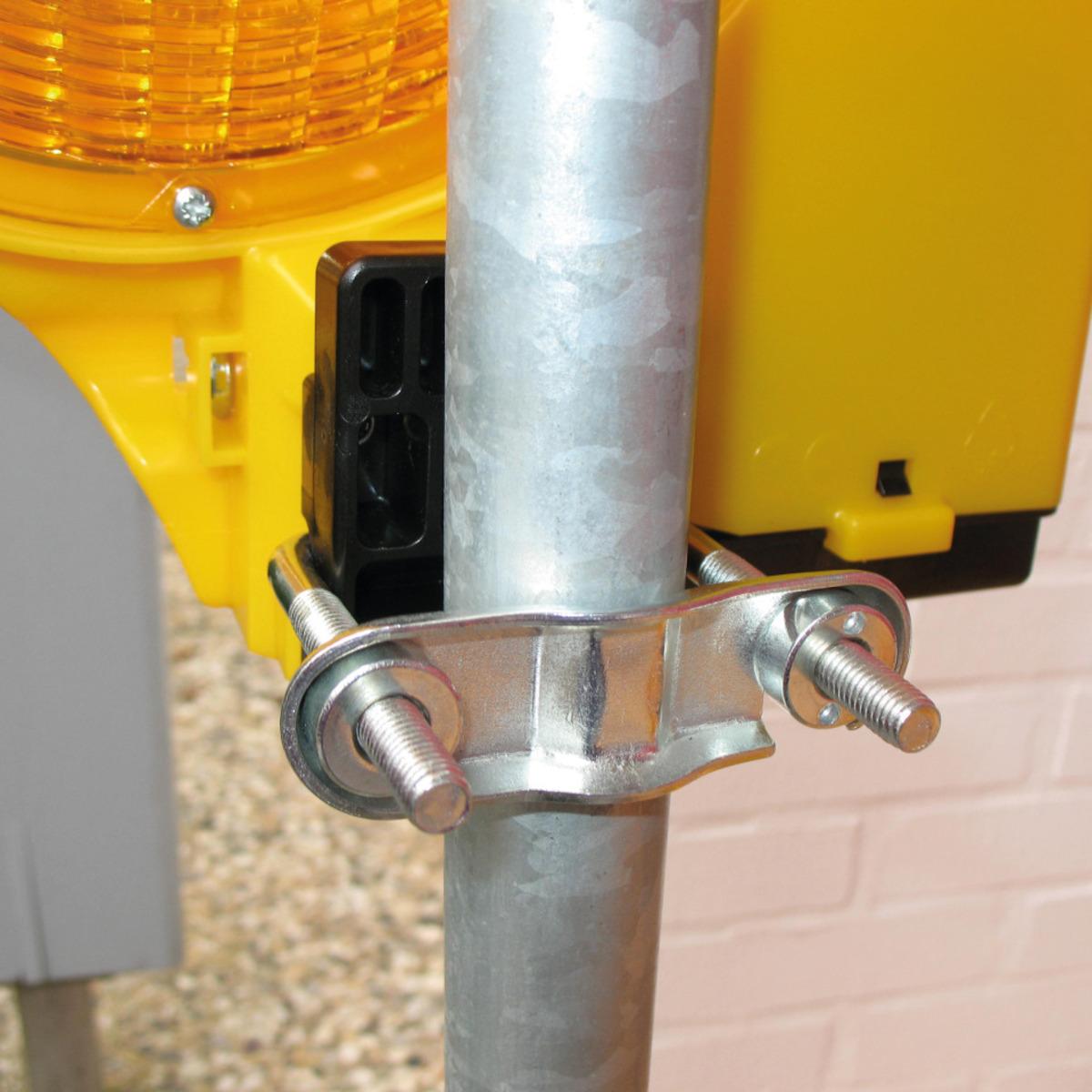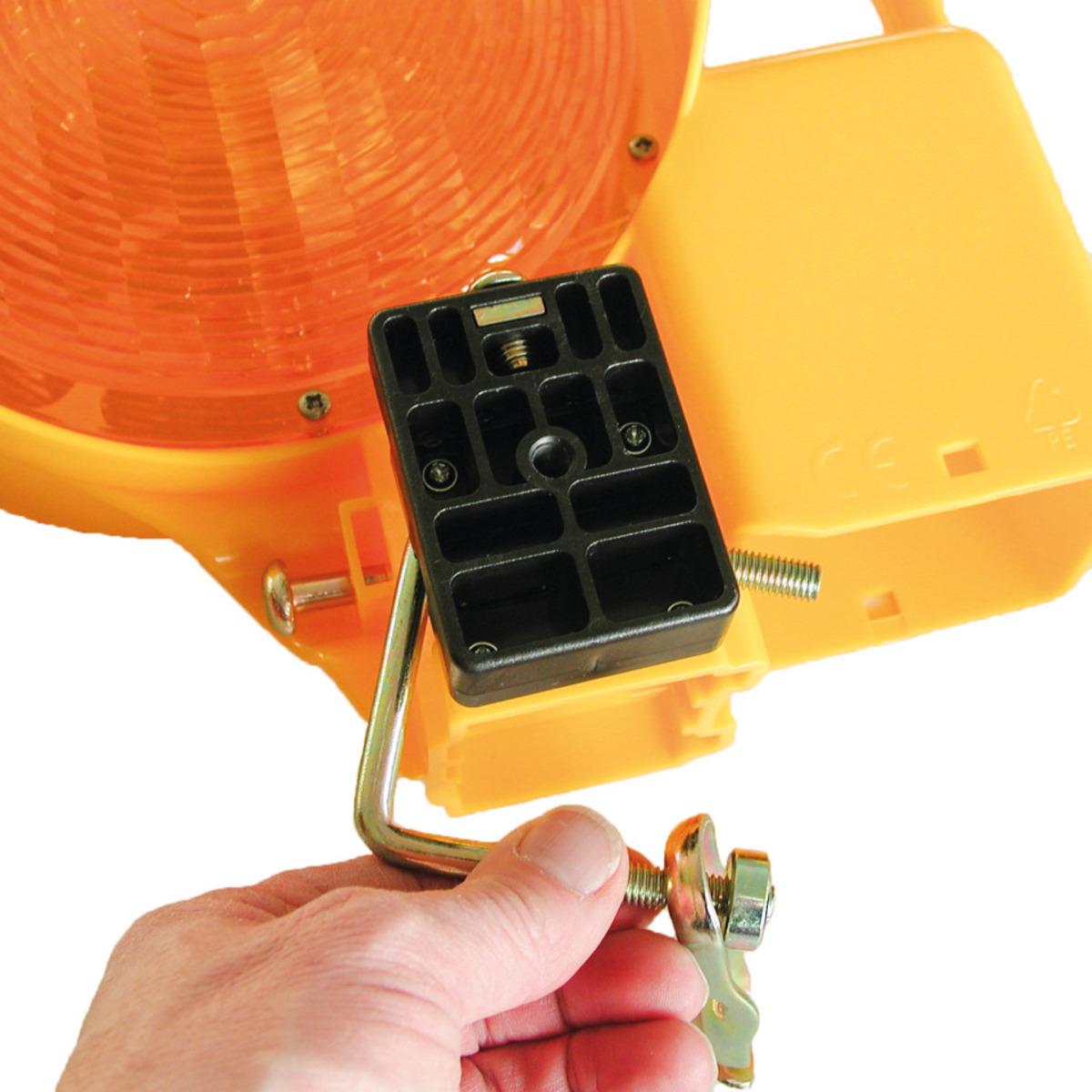Zweiseitige LED Warnleuchte BakoLight zur Befestigung an Baken, Absperrschranken, Absturzsicherungen oder Bauzäunen, Batteriebetrieben (6V-Blockbatterie, nicht im Lieferumfang enthalten)