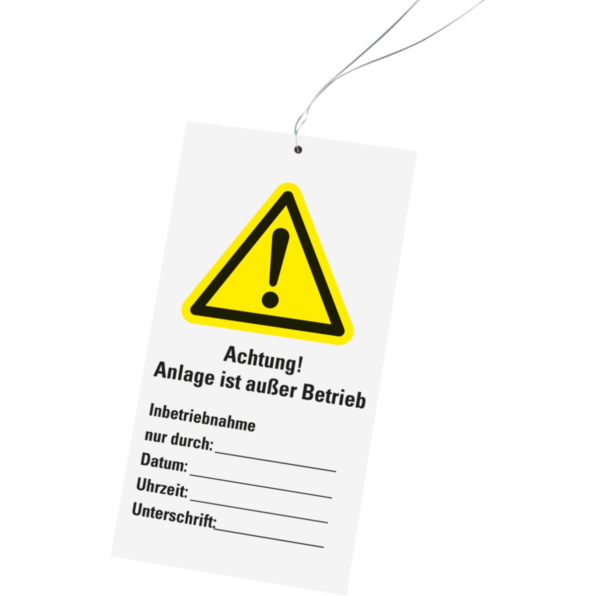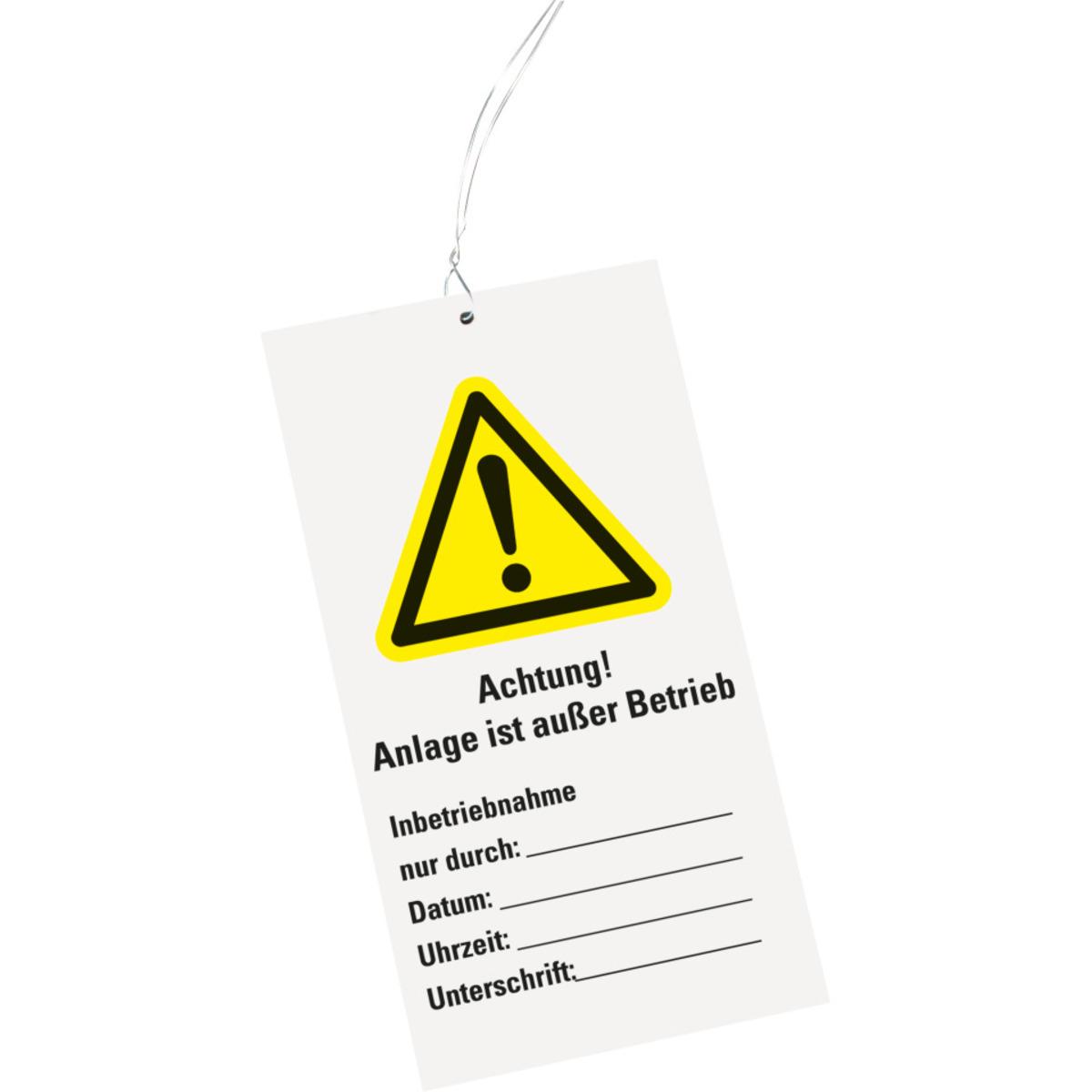 Auswahl: Wartungsanhänger Achtung! außer Betrieb, Kunststoff, 76x147mm, Kabelbinder, 10/VE