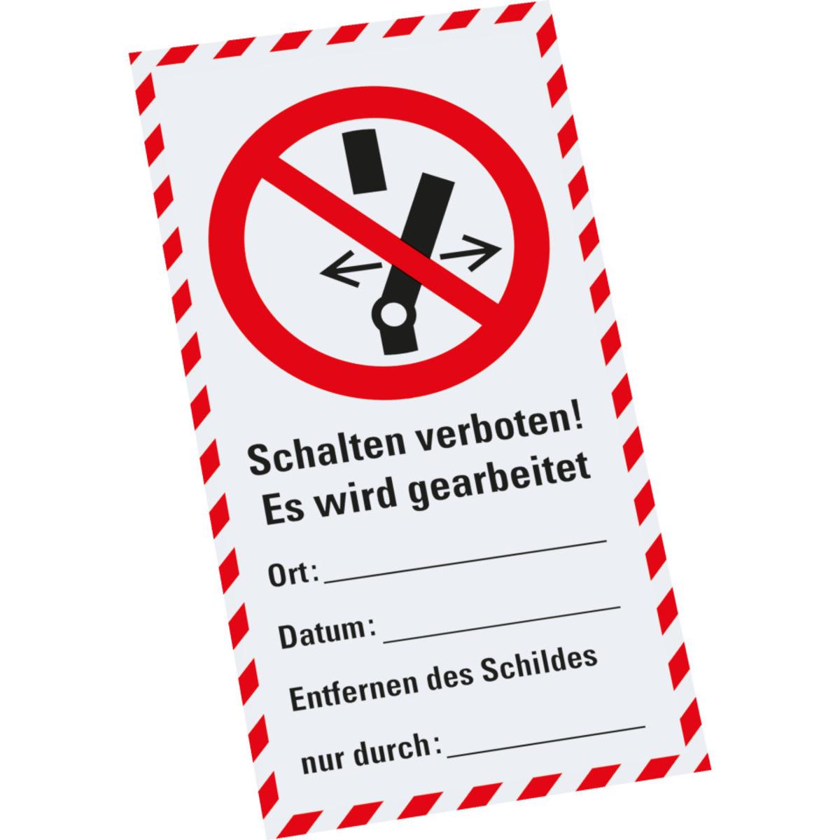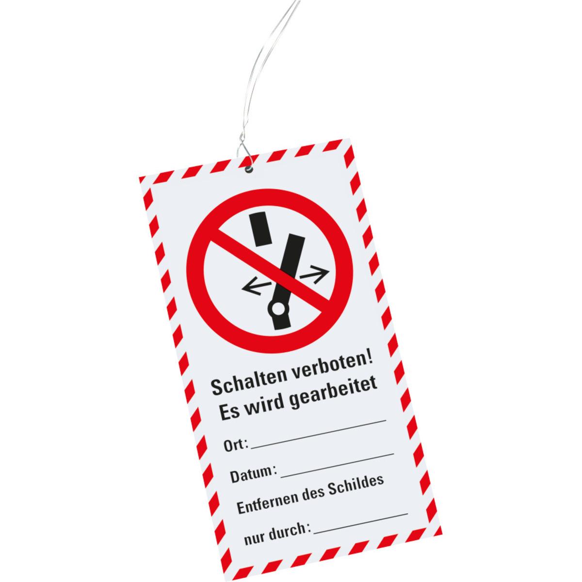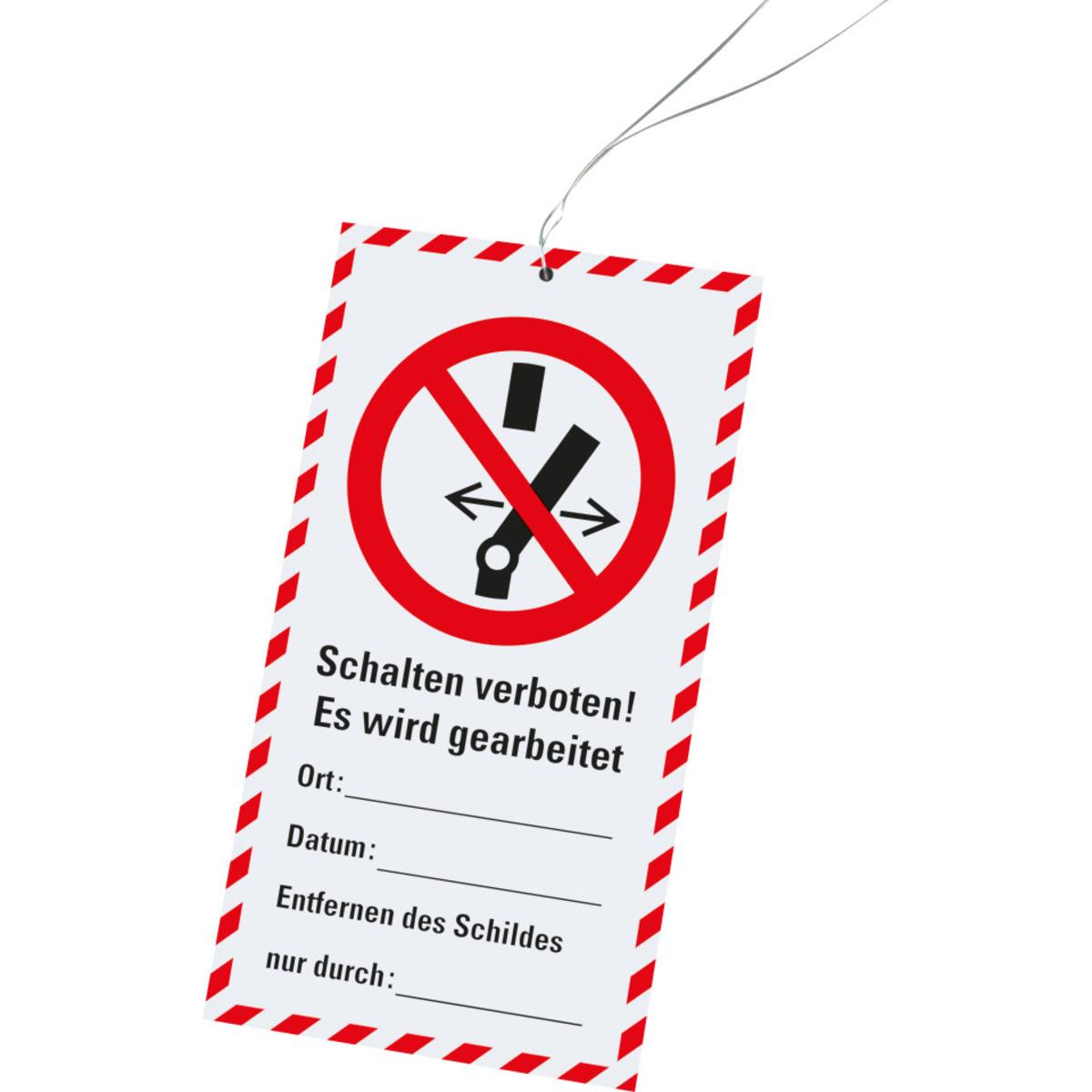 Auswahl: Wartungsanhänger Schalten verboten, Kunststoff, 76x147mm, inkl. Kabelbinder, 10/VE