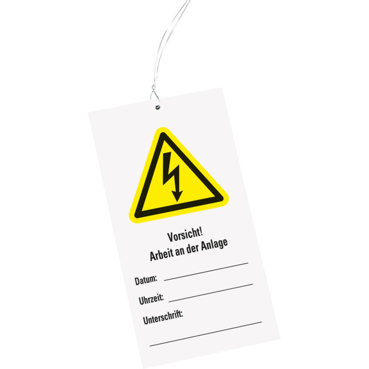 Auswahl: Wartungsanhänger Vorsicht! Arbeit a.Anlage, Kunststoff, 76x147mm, Kabelbinder, 10/VE