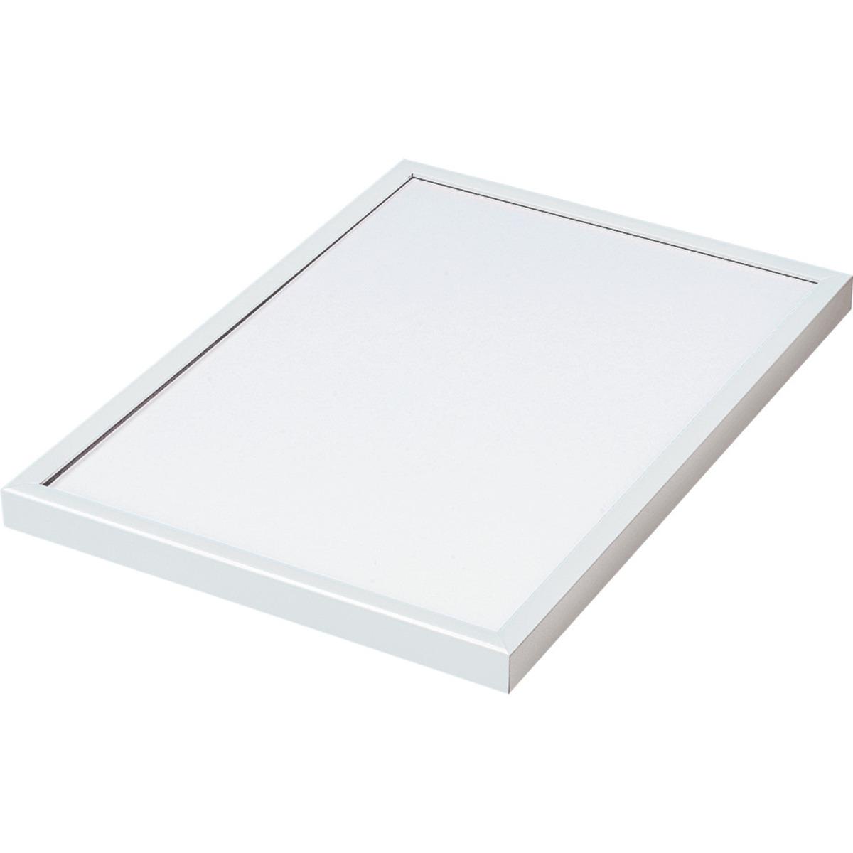Wechselrahmen mit schmalem Rand, spitzen Ecken sowie splitter- und reflexfreier Kunststoffabdeckscheibe, stabile Rückplatte aus Hartfaser mit Halterungen, für den Innenbereich