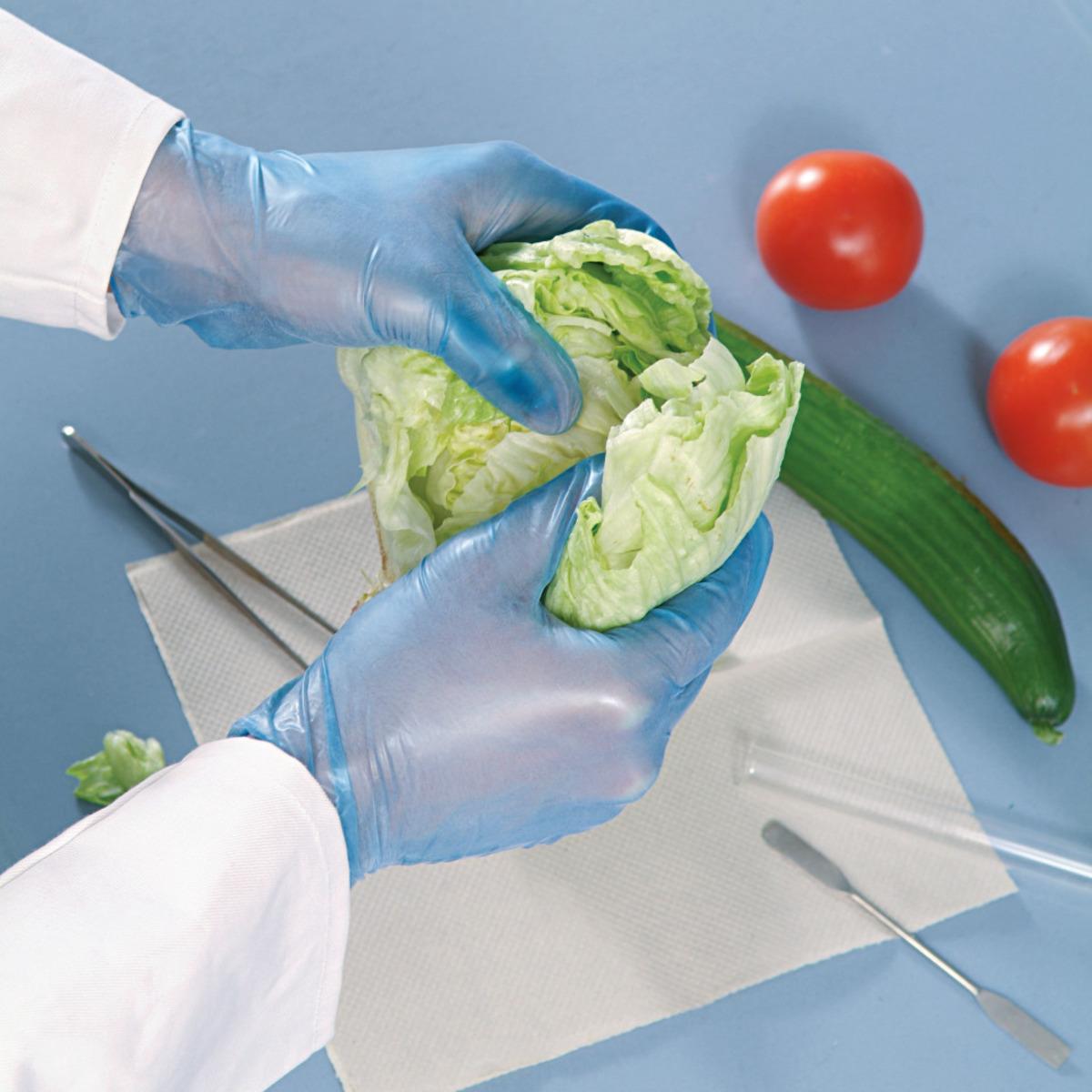 Einmalhandschuhe mit sehr guter Passform und angenehmen Tragegefühl, lebensmittelunbedenklich, geruchsneutral, beidseitig tragbar, leicht gepudert, silikonfrei, im Spenderkarton.