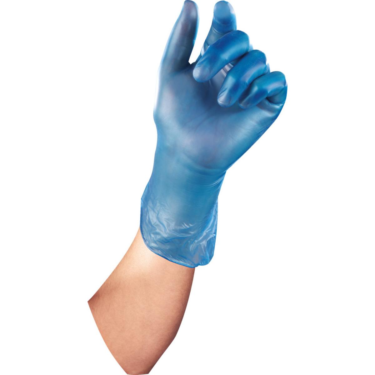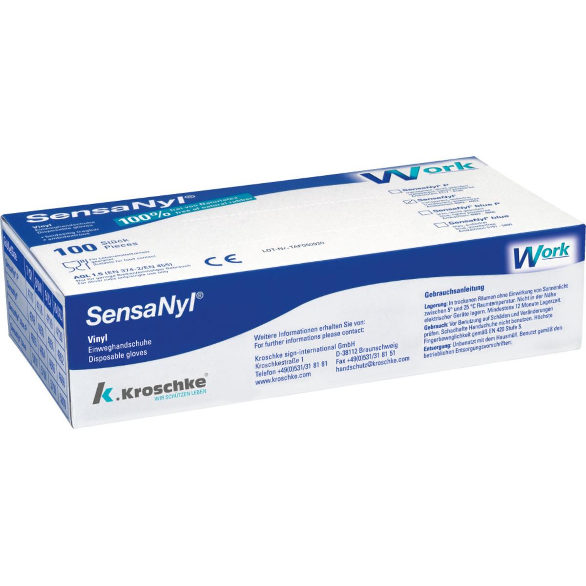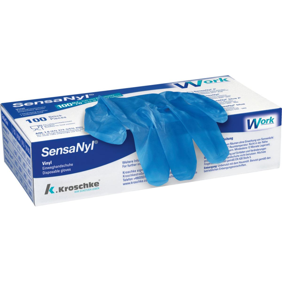 Auswahl: Work Einmalhandschuh SensaNyl® blue P, Kat.I, blau, gepudert, Vinyl, Größe 8, 100/VE