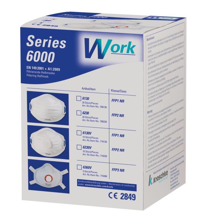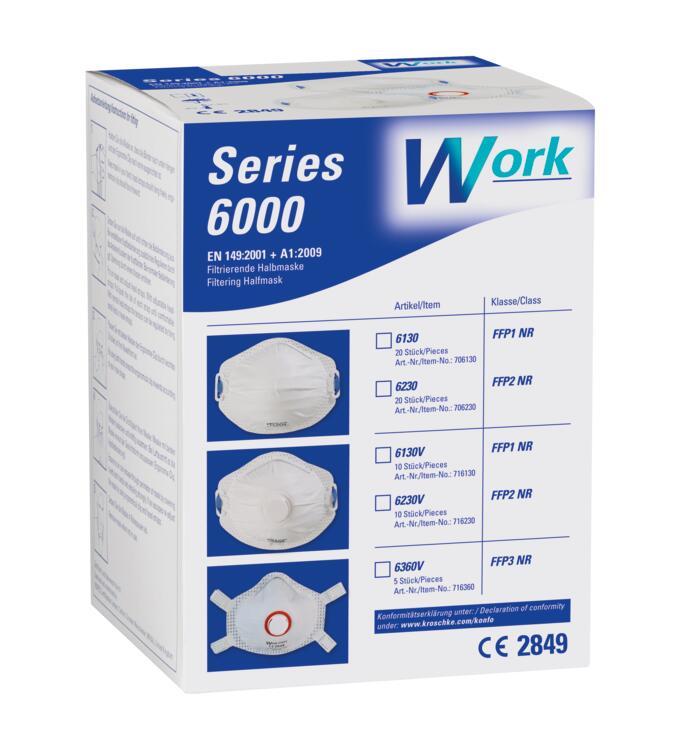 Auswahl: Work Serie 6000 filtrierende Halb-/Feinstaubmaske 6360V, Kat.III, FFP3, Ventil, 5/VE