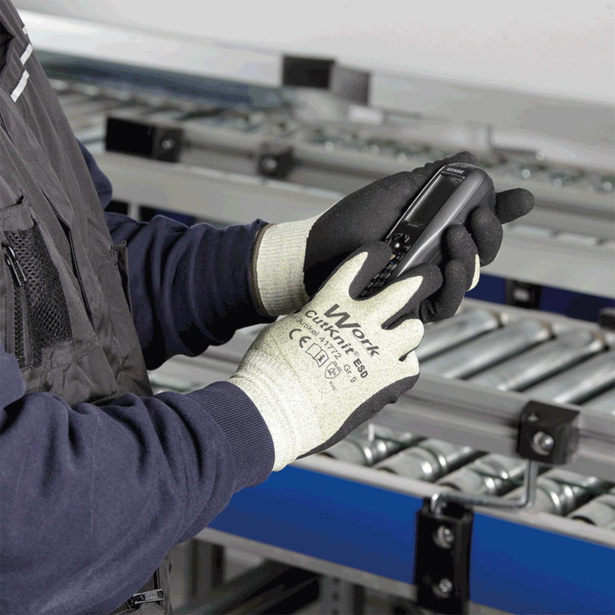 Auswahl: Work Schnittschutz-Handschuh CutKnit® ESD, Kat.II, NY/GF, Nitril-beschichtet, Gr. 8