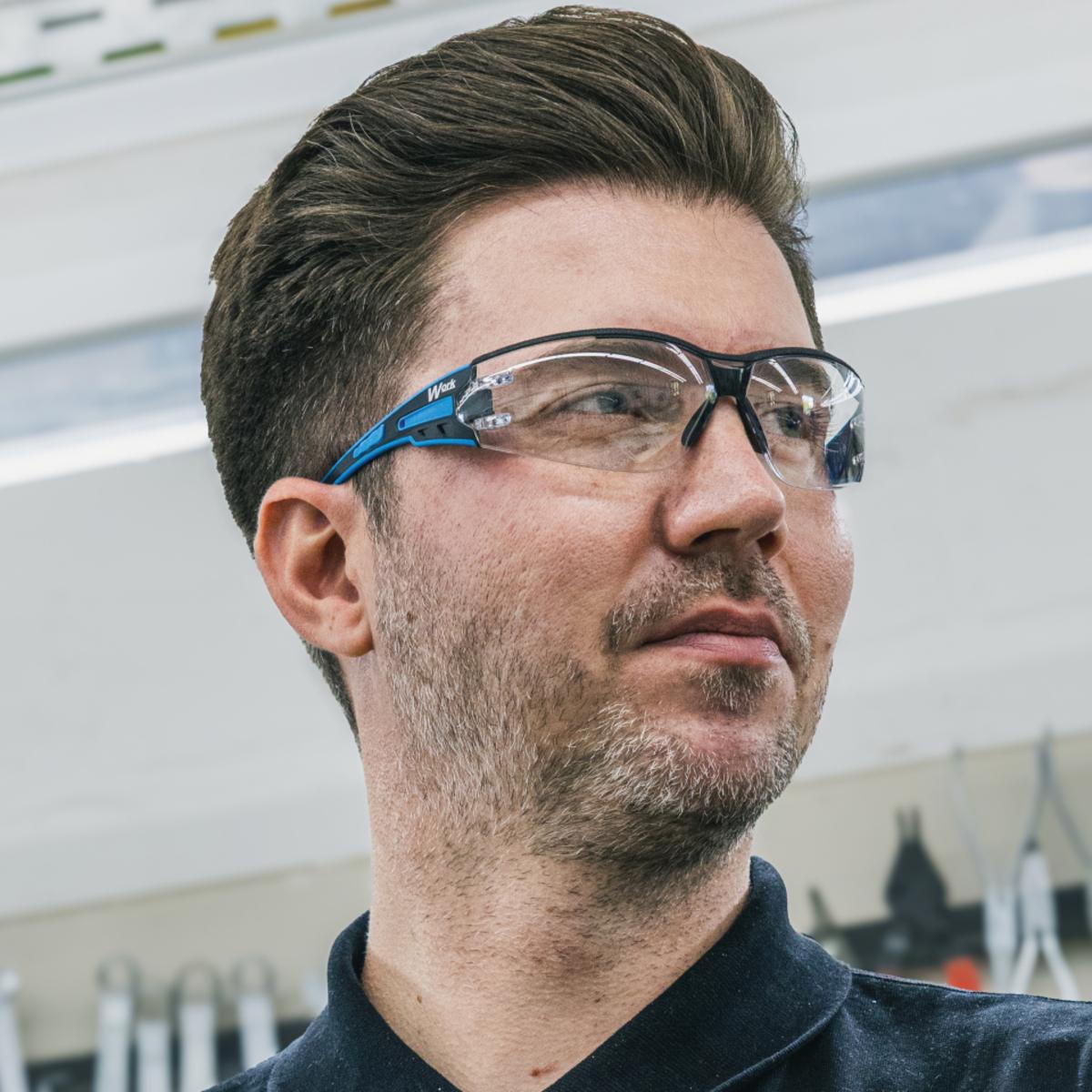 Work Schutzbrille C7 Flex mit flexiblem Rahmen und geringem Anpressdruck, anatomisches Gesichtsfeld, verzerrungsfreie Sicht, Nasenpolster, Augenbrauenschutz für gute Augenraumabdeckung