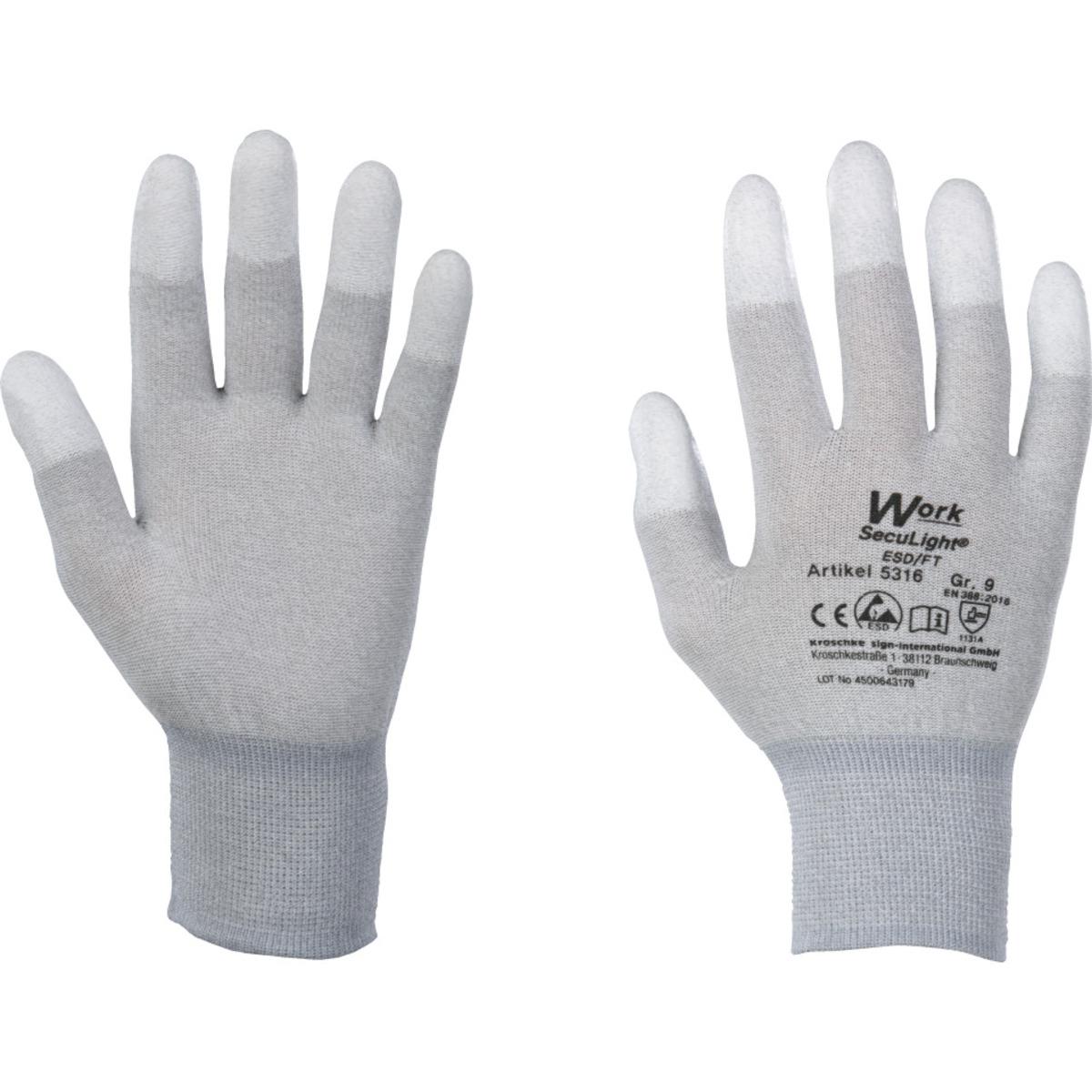 Auswahl: Work Schutzhandschuh SecuLight® ESD/FT, Kat.II, grau, Nylon-Carbon, PU, Größe 8