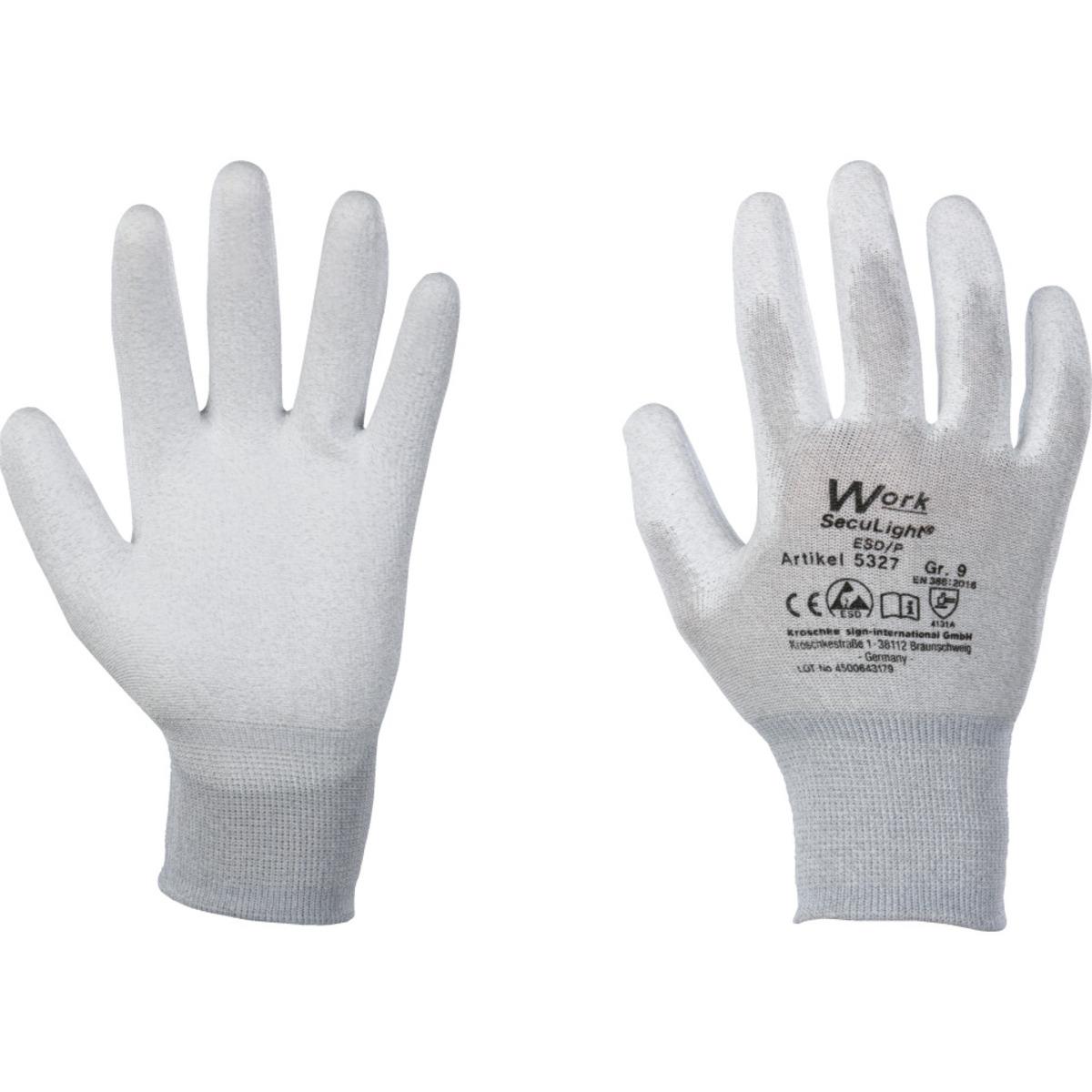 Auswahl: Work Schutzhandschuh SecuLight® ESD/P, Kat.II, grau, Nylon-Carbon, PU, Größe 7