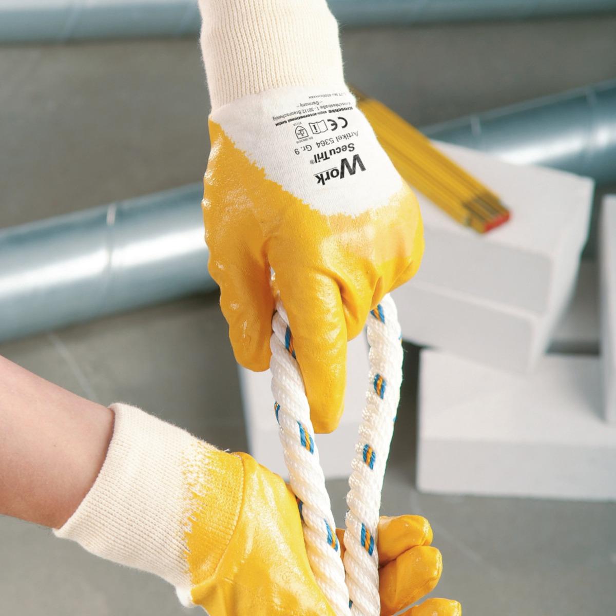 Auswahl: Work Schutzhandschuh SecuTril®, Kat.II, gelb, Baumwolltrikot, Nitril, Größe 7