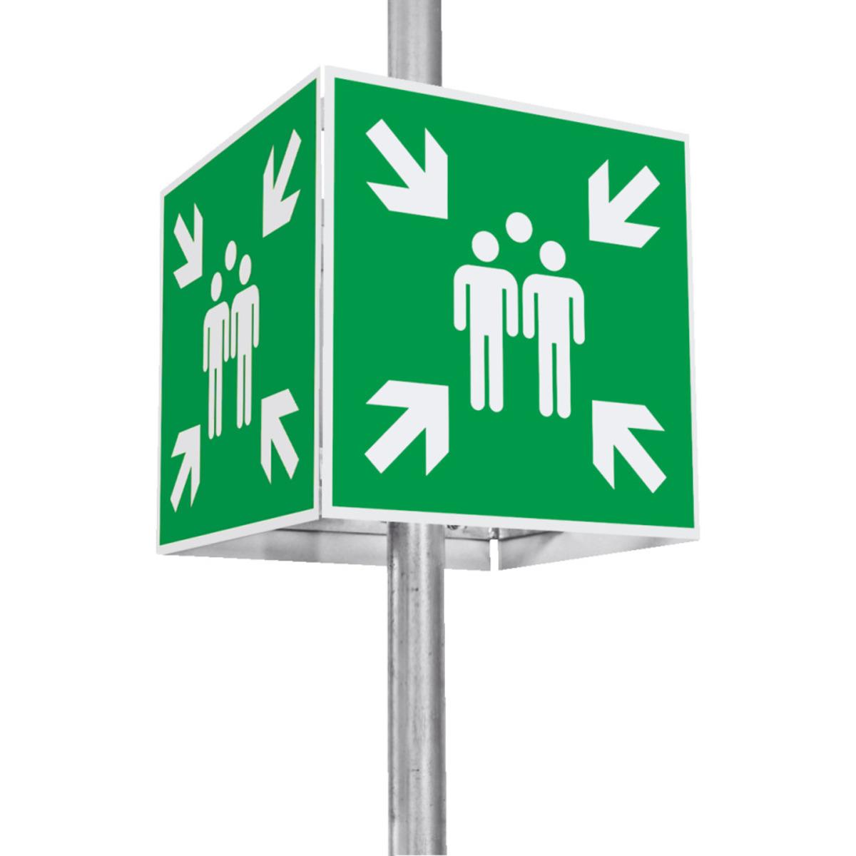 Auswahl: Würfelset Rettungszeichen Sammelstelle, 400x400mm, inkl. Pfosten/Befestigung